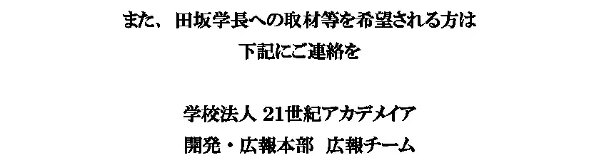 また、田坂学長への取材等を希望される方は 下記にご連絡を |
