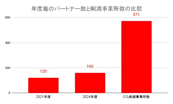 | 宣言当時のパートナー企業数が約120社(2024年は約160社)であることを考慮すると、コスト削減とCO2排出抑制の取組として相応の成果があったものと評価をしています。 | |||||||||||||||||||||||||||||||||||||||||||||