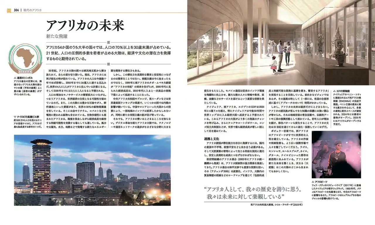| 人類発祥の地であり、地球上で2番目に大きな大陸アフリカ。その500万年におよぶ歴史と、文化‧民族‧社会・宗教の多様性を圧倒的ビジュアル性で網羅・解説。 | |||||||||