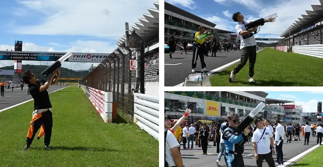 決勝前のスタートセレモニーでは大人気企画「Tシャツバズーカ」を実施!スタンドに向けて打ち込まれるのは、ここでしか手に入らない WECオリジナルTシャツ。キャッチできたら、世界戦の特別な記念アイテムをゲット!