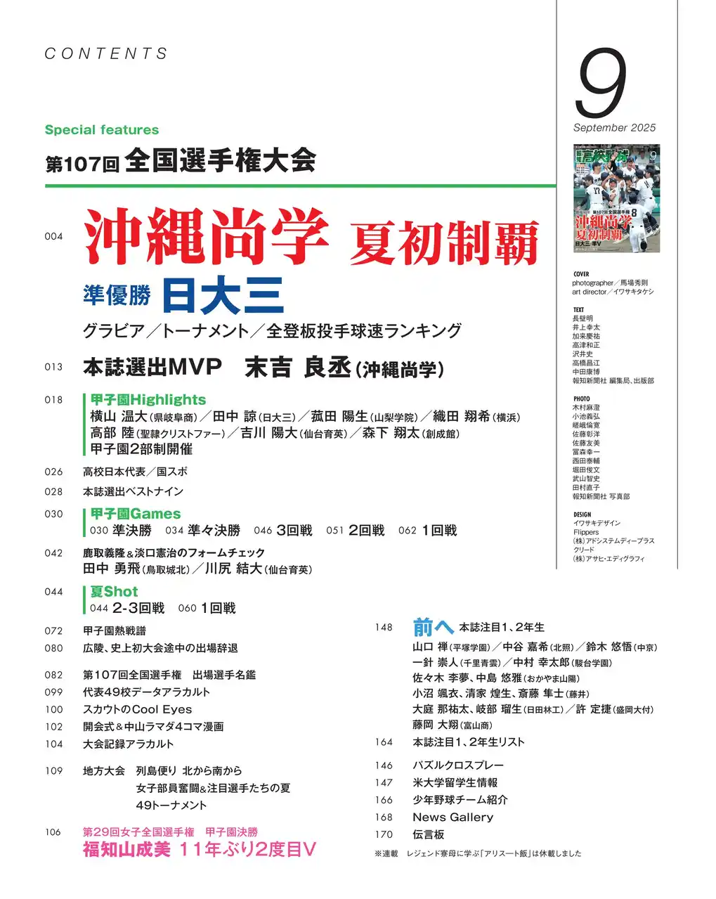 :ドラフト特集・中学野球特集・高校日本代表特集 |