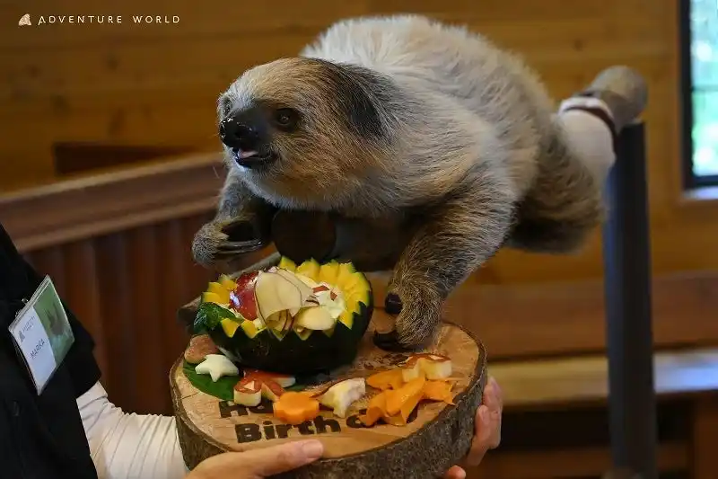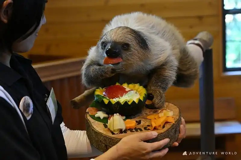 アドベンチャーワールド(和歌山県白浜町)にて、フタユビナマケモノのこどもが1歳の誕生日を迎えたことを記念し、特別イベントを実施しました! |