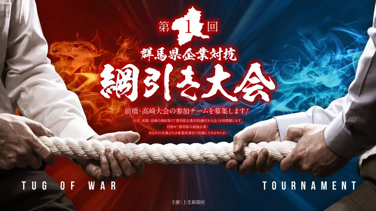 | 上毛新聞社は、前橋市・高崎市と連携し「群馬県企業対抗綱引き大会」を開催します。現在、参加チームを募集しています。 | |||||||