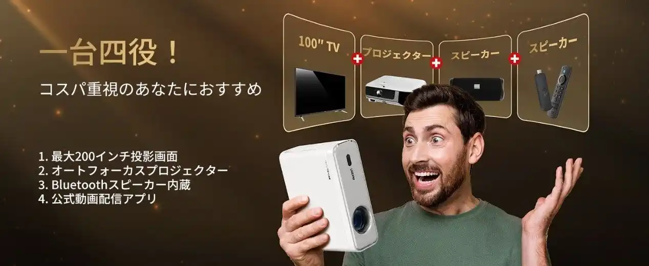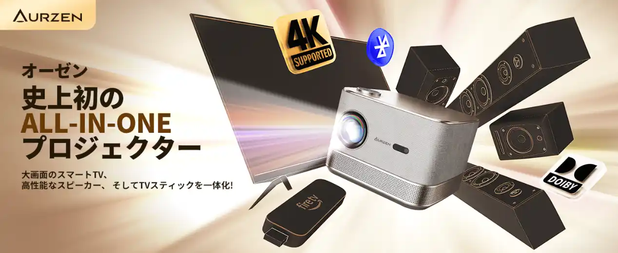 【36W内蔵スピーカー・Netflix/YouTube/Prime Video公式認証】Aurzen Boom3プロジェクターが、50%OFF!