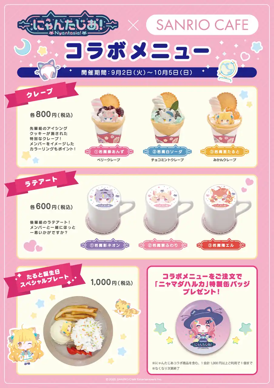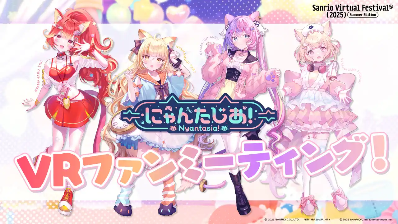 にゃんたじあ!が2025年9月19日(金)~9月28日(日)で行われる、『Sanrio Virtual Festival 2025 Summer Edition』へ出演し、VRChat内でファンミーティングを開催することが決定しました! |
