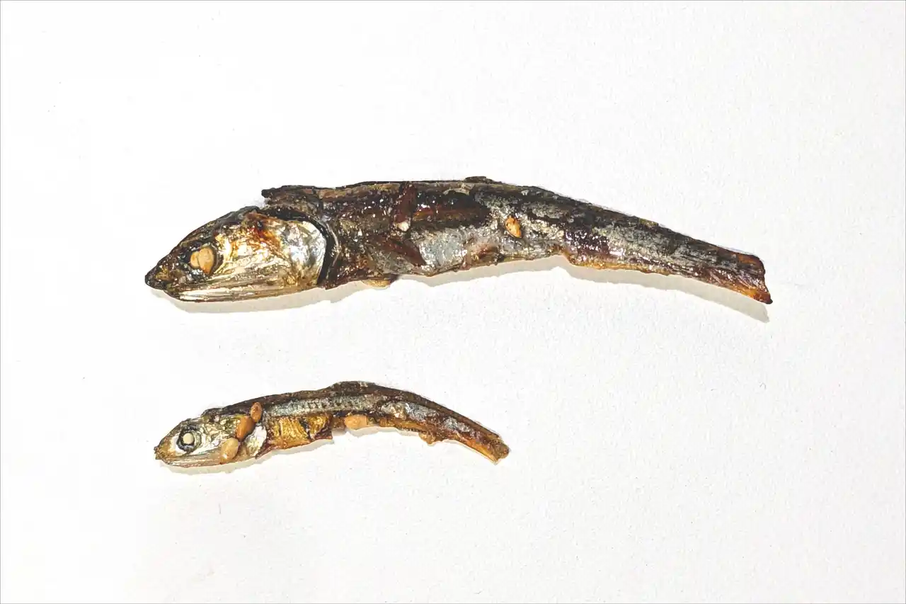 当社使用片口いわしと『胡麻いわし炙り焼』の比較 |