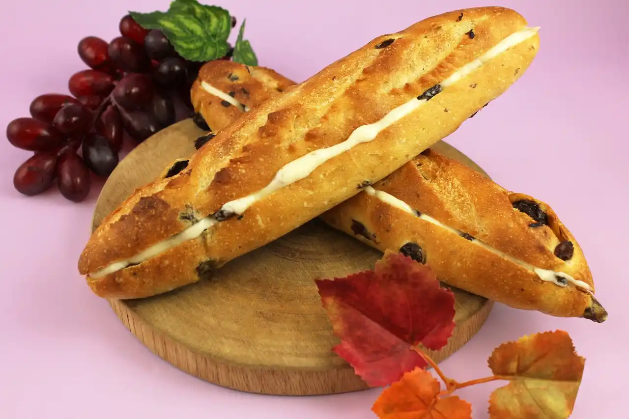 | ルヴァン種とフランス・ロレーヌ岩塩、ラム酒漬けレーズンを練り込んだフランスパン生地に、ラムレーズンクリームをサンドしました。ラムレーズンの芳醇な香りと風味がたっぷり詰まった、贅沢な一品です。 | |||||||||