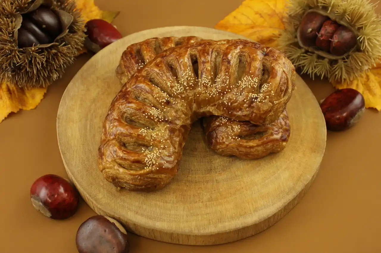 | 熊本県産和栗を使用したマロンクリームをデニッシュ生地に包んでさっくりと焼き上げました。ふんわりとしたデニッシュ生地とくちどけの良いマロンクリームに、ほっこりする一品です。 | |||||||||