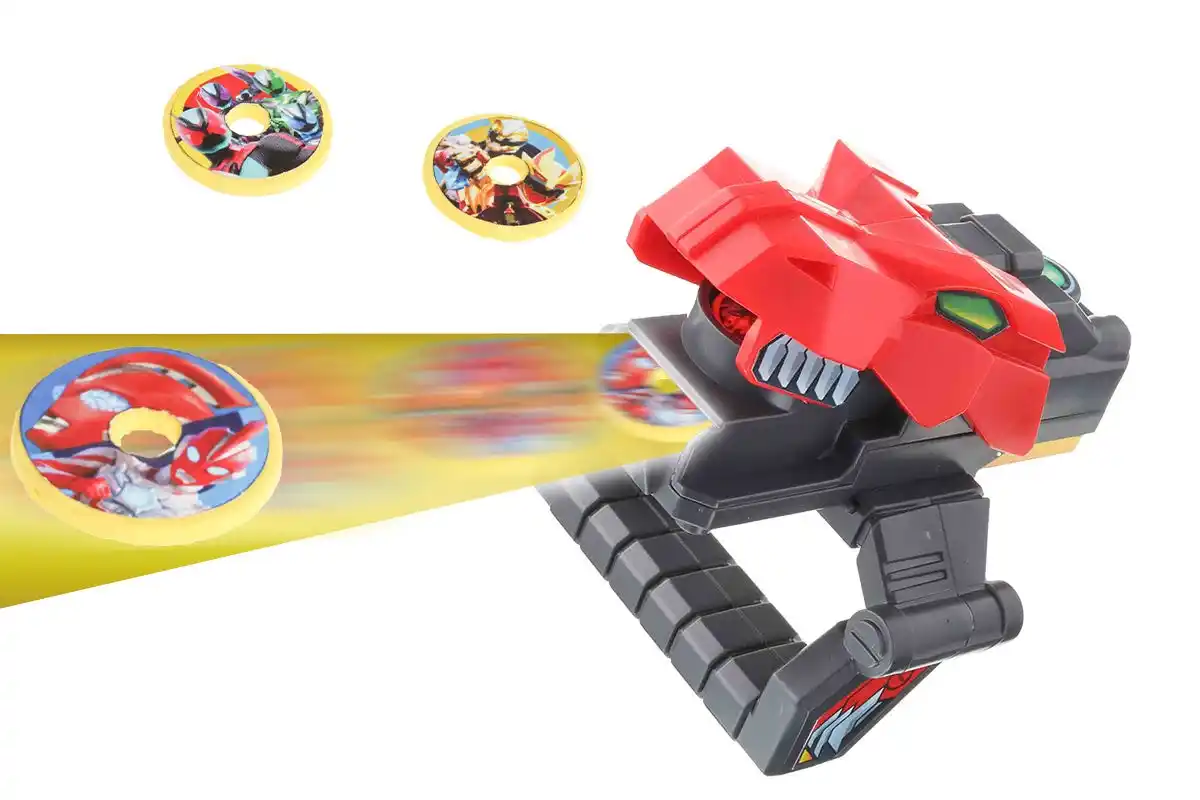 スーパーヒーローのメダル弾をガブッとセットすると、 ティラノの口から三連弾をはなつことができます!