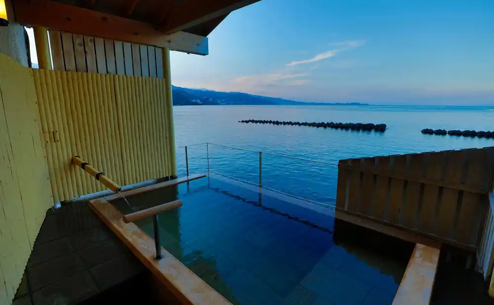 平鶴(ひらつる)では、熱海の中で最も海に近い貸切露天風呂潮彩(しおさい)がお楽しみいただけます。