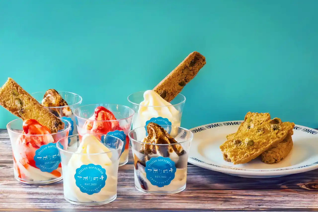 『ナポリの青』は2022年3月イタリアンソフトクリーム専門店としてオープンいたしました。1996年より地元の美味しい食材を使ったイタリア料理を提供してきた『レストランパリンカ』のオーナーシェフは無類のソフトクリーム好き。故郷である大崎市田尻のハートフルランド・ジャージー牧場から取り寄せた希少なジャージー牛乳とマスカルポーネチーズを組み合わせ、コクがありつつもすっきりとしたくちどけにこだわりぬいて開発し、これをイタリアンソフトクリームと名付けました。 |
