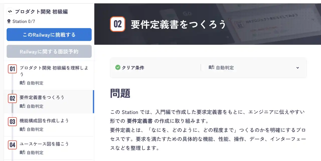 TechTrainでは、過去にプロダクト開発Railwayとして実践編をリリースしました。しかし名の通り、すでに一定以上のスキルがある方が対象でしたので、難易度は少し高かったように思います。 |