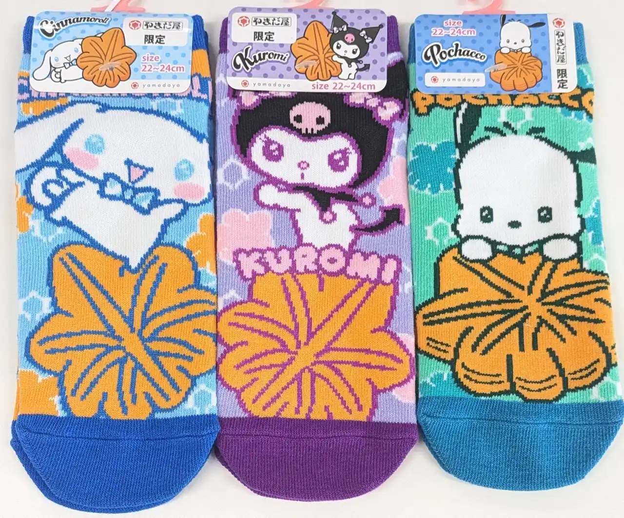 【株式会社やまだ屋】 もみじ饅頭 x サンリオキャラクターズシナモロール、クロミ、ポチャッコがコラボ!第2弾「サンリオコラボ もみじ饅頭 靴下」