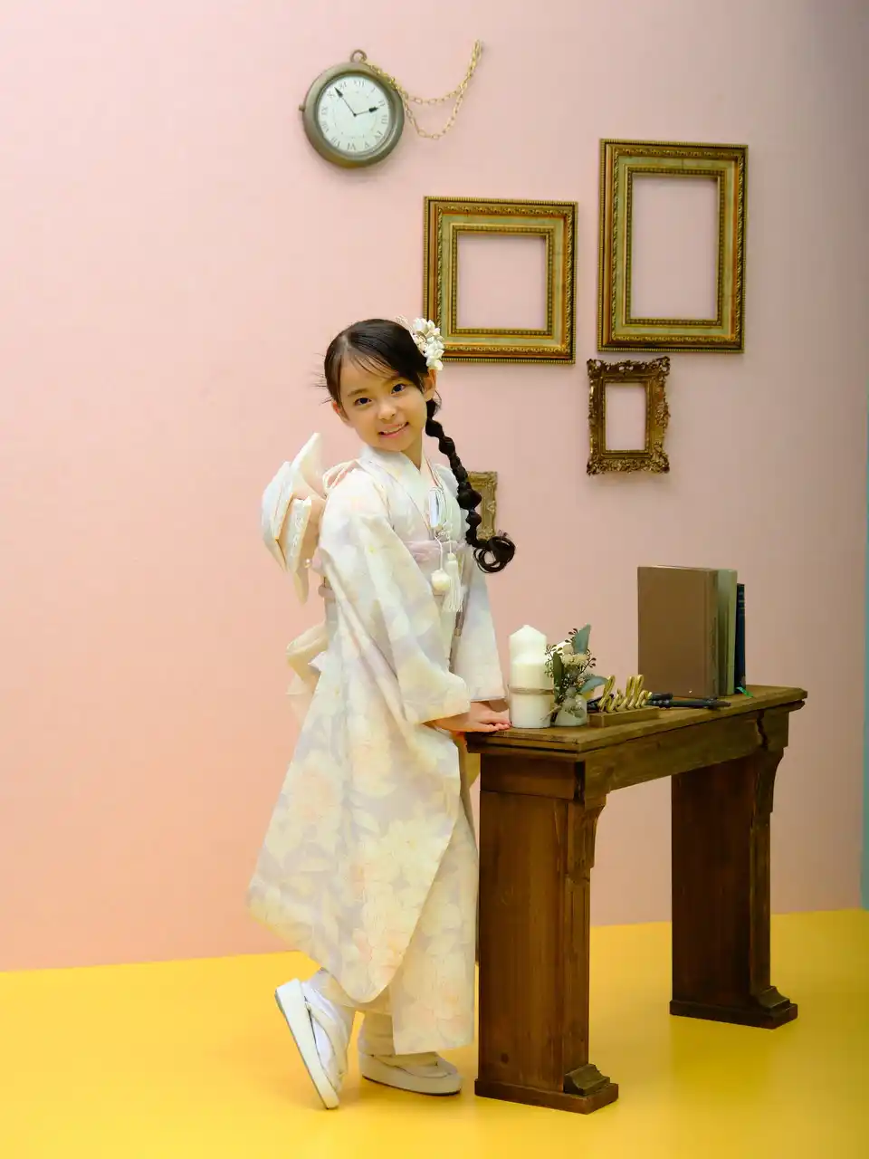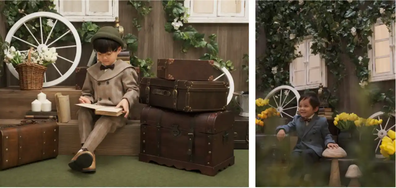 ウッディでナチュラルな背景で、お子様の自然な表情を引き出します。 |