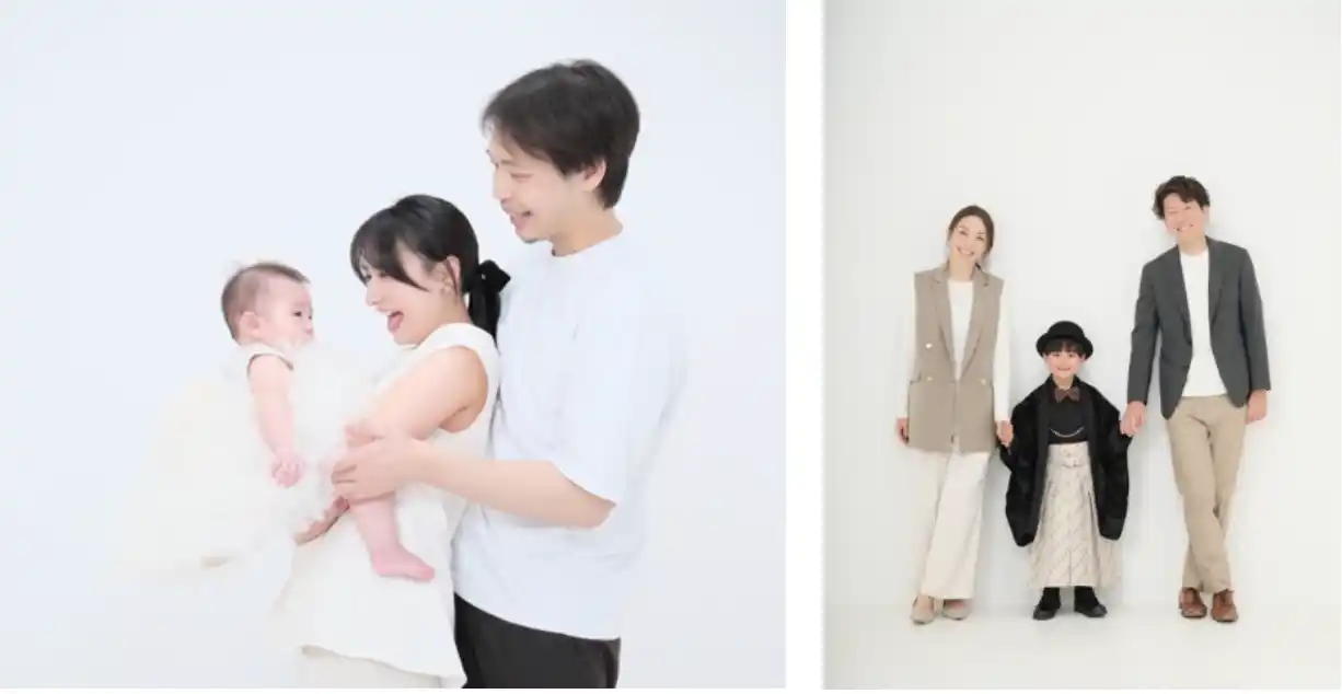 白い背景での家族の記念写真は、シンプルな背景だからこそ、家族の温かいふれあいや絆をより一層引き立てます。装飾がないことで、自然な笑顔や仕草、そして家族一人ひとりの個性が際立ち、かけがえのない大切な瞬間を永遠の宝物として残すことができます。シンプルな空間に溢れる家族の愛情を、一枚の写真に閉じ込める、特別な記念写真になること間違いなしです。 |
