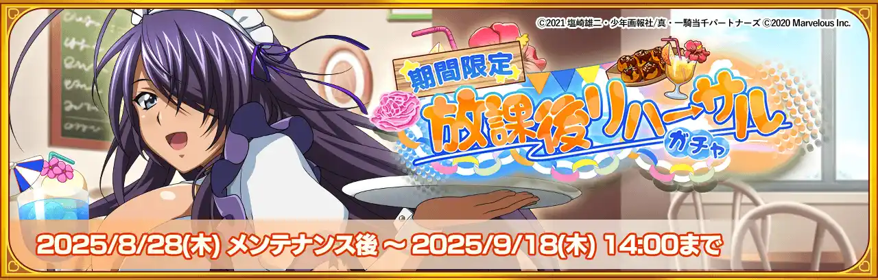 | 株式会社マーベラス(代表取締役社長:照井慎一/所在地:東京都品川区)は、大人気シリーズ「一騎当千」のAndroid/iOS/PC向けゲームアプリ『一騎当千エクストラバースト』にて、2025年8月28日(木)のメンテナンス終了後より、シナリオイベント「成都学園祭~夏は短し騒げよ乙女~」を開始したことをお知らせいたします。 | |||