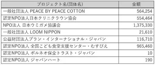 今回は、2024年7月から2025年6月までに販売したプロジェクト商品・約50万点の売上の一部である約350万円を、合計8団体へ寄付金として贈呈します。寄付金は各団体の活動資金に充てられます。 |