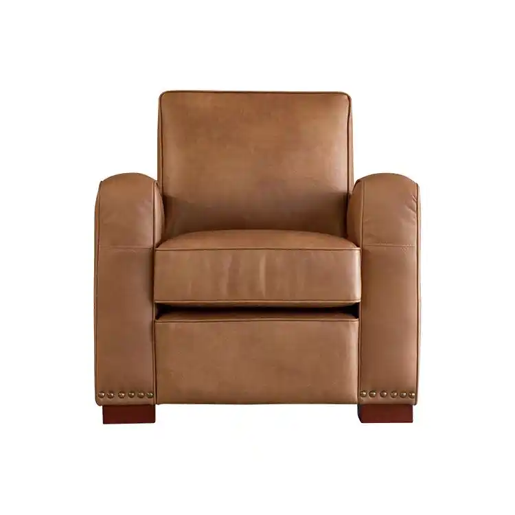 優美な傾斜の背もたれと前面に向かって盛り上がる曲線的なアームが、洗練された雰囲気を演出。全体的にボリューム感のある佇まいは、まさに空間の主役にふさわしい存在感を放ちます。飴色に仕上げた木脚と、エッジを飾る鋲のディテールが、遊び心と品格を両立させています。 インダストリアルやヴィンテージスタイルのインテリアと相性抜群。お部屋に置くだけでインテリアの主役になるソファです。座面はウレタンフォームとSバネを組み合わせ、程よい沈み込みと確かなサポート力を提供します。 |