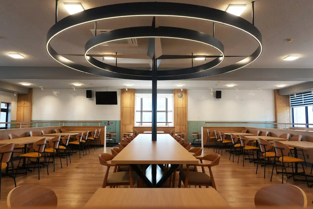 今回、横浜創学館では、魅力ある学校づくりの一環として、食堂空間をリニューアルしました。ただ食事をするだけでなく、新たな学校の「顔」として親しまれる施設を目指し、生徒会と当社が共同で企画しました。 |