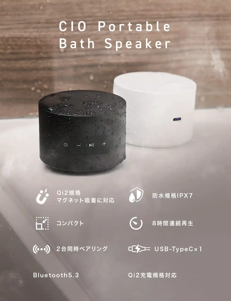 株式会社CIO(本社:大阪府守口市、代表取締役社長:中橋 翔大)はマグネットで簡単に吸着・防水スピーカー『CIO Portable Bath Speaker』を製品化。メーカー希望小売価格、5,980円(税込)にて、2025年8月29日(金)よりAmazonと楽天市場のCIO公式オンラインストアならびに一部の家電量販店、直営店CIO STOREなどにて販売を開始いたします。応援購入サービスMakuakeにて実施したプロジェクトでは、3600人以上の方に応援購入をいただきました。 |