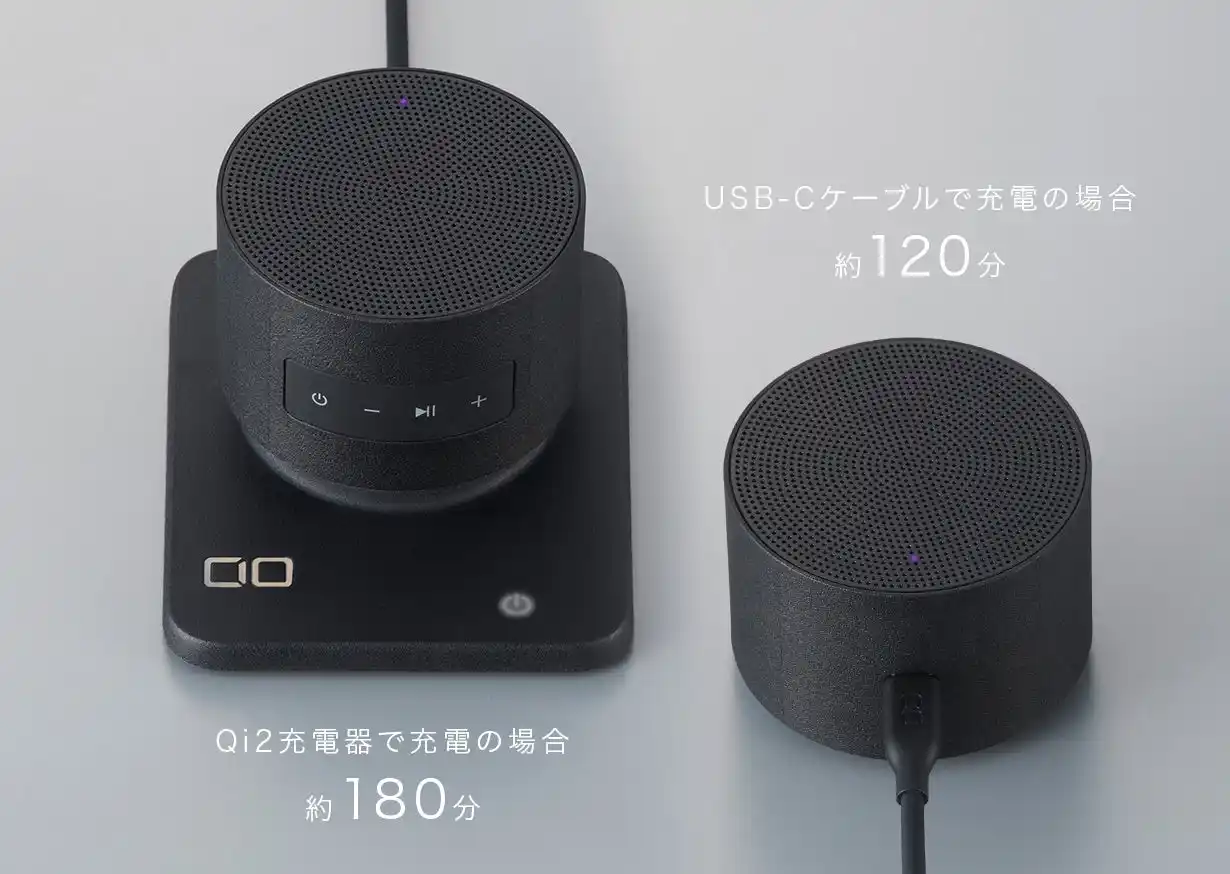 Qi規格の充電器にも対応しているので、Qi2対応充電器でスマートに充電でき、内蔵バッテリー(1800mAh)は音量50%時で最大約8時間再生可能で、満充電は約180分で完了します。 自宅だけでなく、旅行やイベントなど電源のない場所でも活躍します。 |