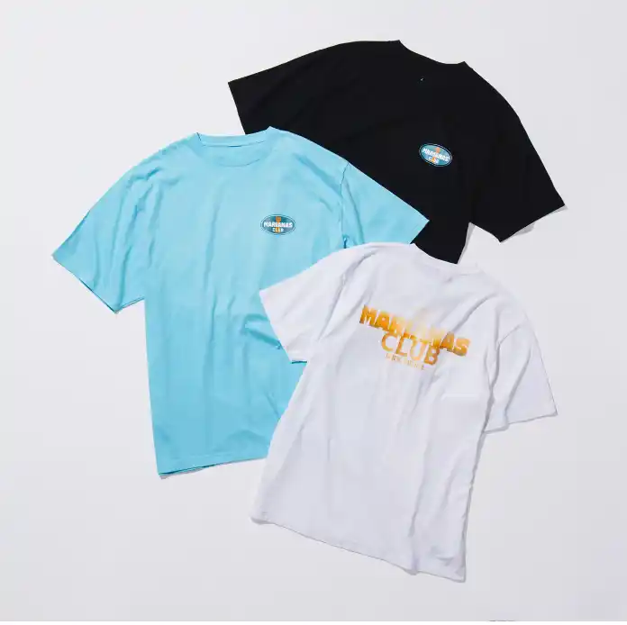 マリアナ諸島の美しい風景をノスタルジックな雰囲気に落とし込んだ半袖Tシャツを制作しました。前面にはオリジナルのサークルロゴ、背面には「THE MARIANAS CLUB」のグラフィックを配したデザイン。アクティブに気兼ね無く着ることのできるコットンのTシャツで、定番のホワイト・ブラックだけでなく、マリアナブルーを彷彿とさせるターコイズの全3色ご用意。 |