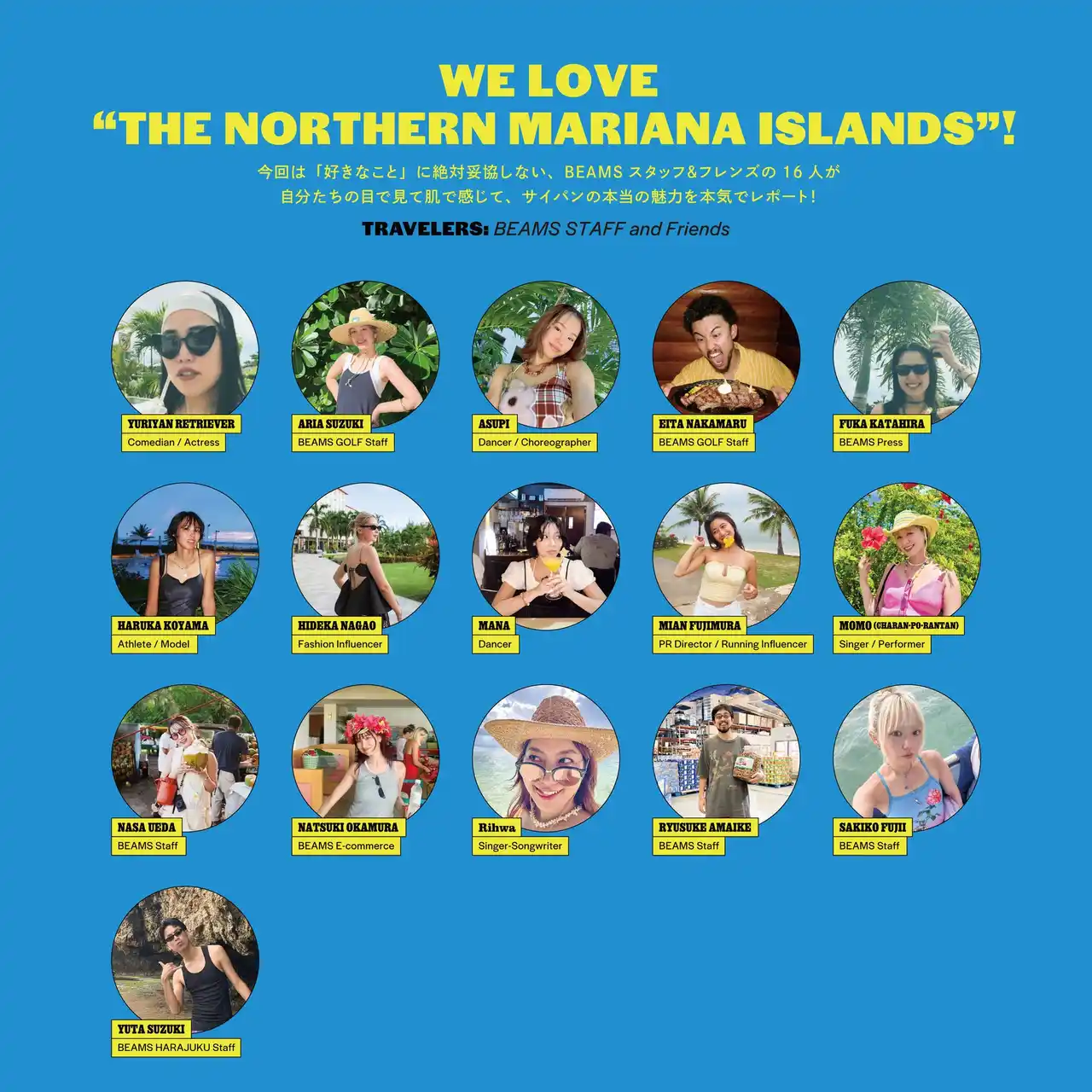 のメンバーはビームススタッフとその友達たち16人で構成され、7月にサイパンを中心とした渡航ツアーへ参加してもらい、リアルな視点で各自にてSNS投稿を実施。現地体験の情報を集約した特設サイト(https://www.marianas.jp/themarianasclub_bcr)を2025年8月29日(金)に公開。特設サイトを編集した冊子も作成し、 観光ガイドのツールとしてJATA ツーリズムEXPOジャパンのイベント会場で配布いたします。さらに、ビームス クリエイティブがデザインしたTシャツやバゲージタグといったノベルティを制作。マリアナ政府観光局が実施するイベント・キャンペーン等で活用予定です。 |