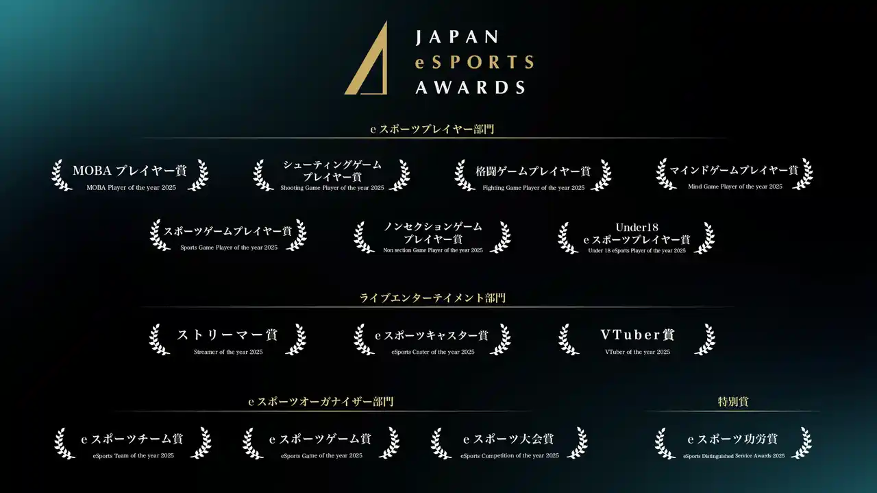 一般社団法人日本eスポーツ協会(会長:早川英樹 以下、JESU)は、2026年1月12日(月・祝)に「日本eスポーツアワード2025」を開催することをお知らせいたします。 |