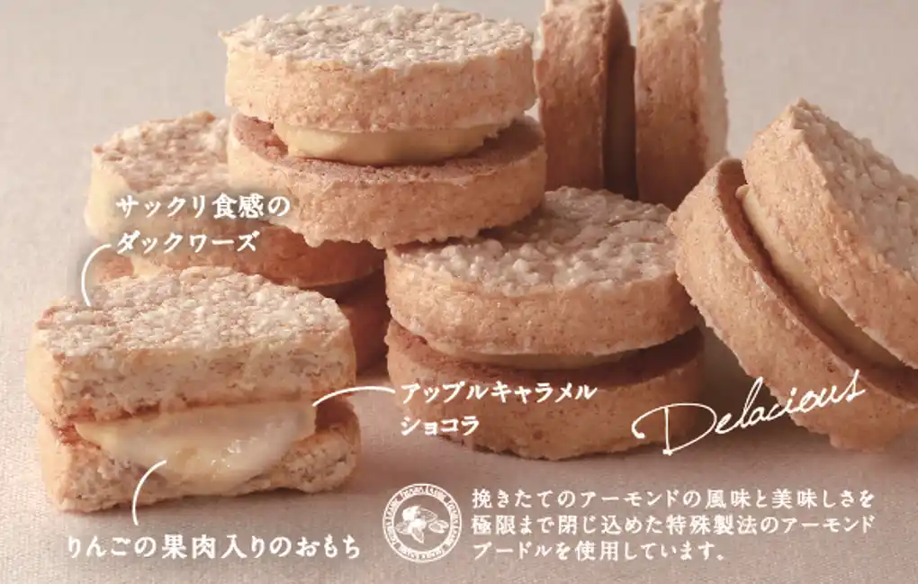 “名古屋のミックス文化 × フランス菓子の本格的な味わい”から生まれた、「ネオ和菓子」の先駆け ともいえる「名古屋ふらんす(R)」は2005年、愛知万博の開催とともに誕生しました。20年の時を経て、その魅力を食べやすいプチサイズに凝縮した「名古屋ふらんす(R)プチ」は、サックリ軽やかなダックワーズと、キャラメルショコラに包まれたやわらかなおもちが織りなす、これまでにない食感のコントラストを実現しました。 |