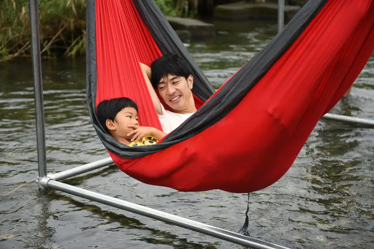 | 「遊ぶ」では、都幾川を利用したアクティビティが特徴的です。都幾川の河床にハンモックを設置し、吹き抜ける川風を肌で感じられる「河床ハンモック」に、川の流れを利用したゲーム「清流ピンボール」、木を登る「ツリークライミング」など、子どもから大人まで町を五感で感じることができます。 | |||||||||||||||||||