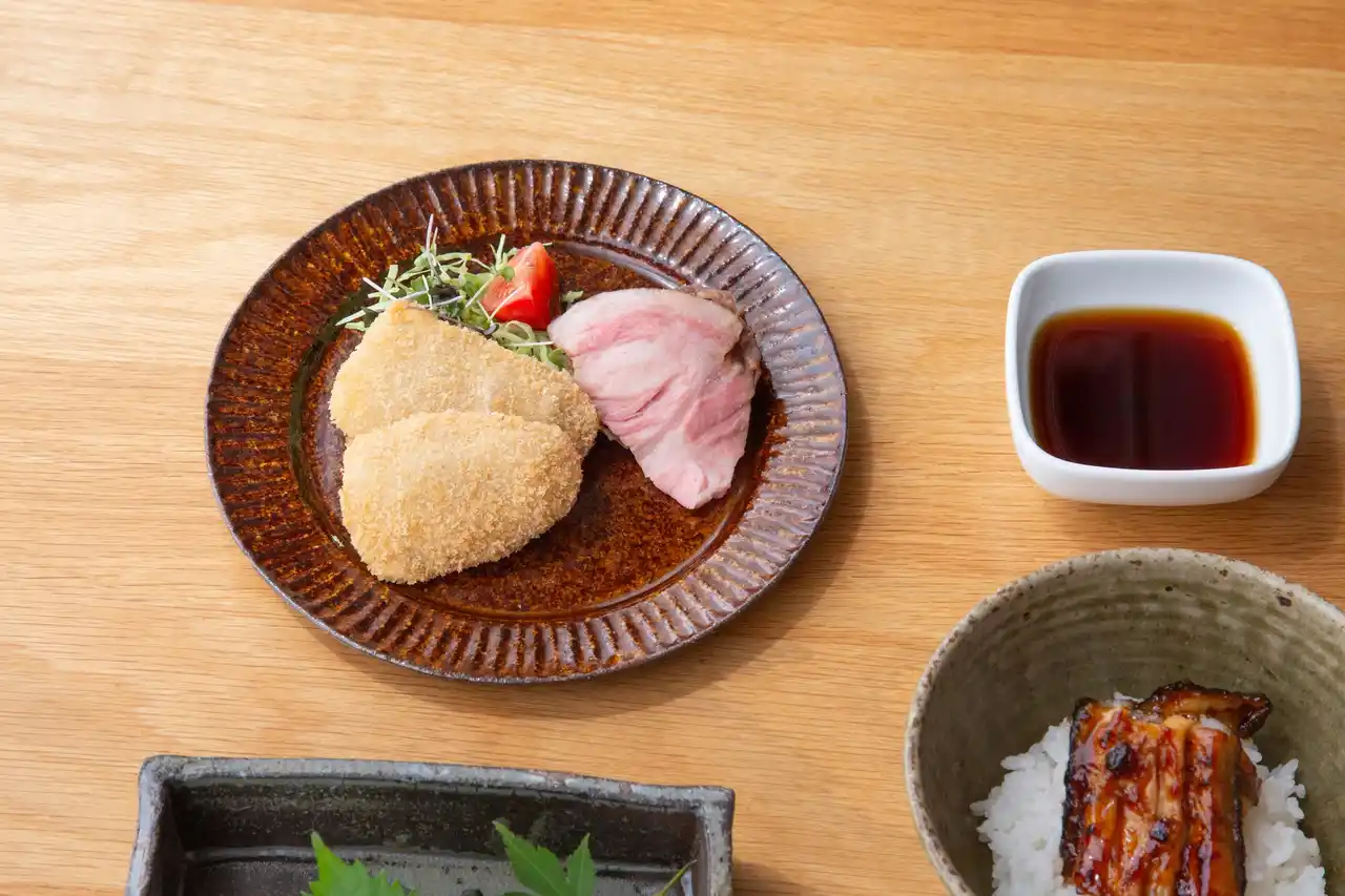 四万十ポークヒレカツと直七ポン酢 醤油麹のローストポーク |
