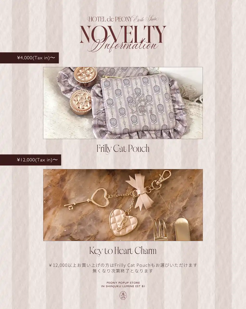 猫ちゃん柄の「Frilly Cat Pouch」が新登場・ハイライトパケモチーフの「Key to Heart Charm」も再登場 |