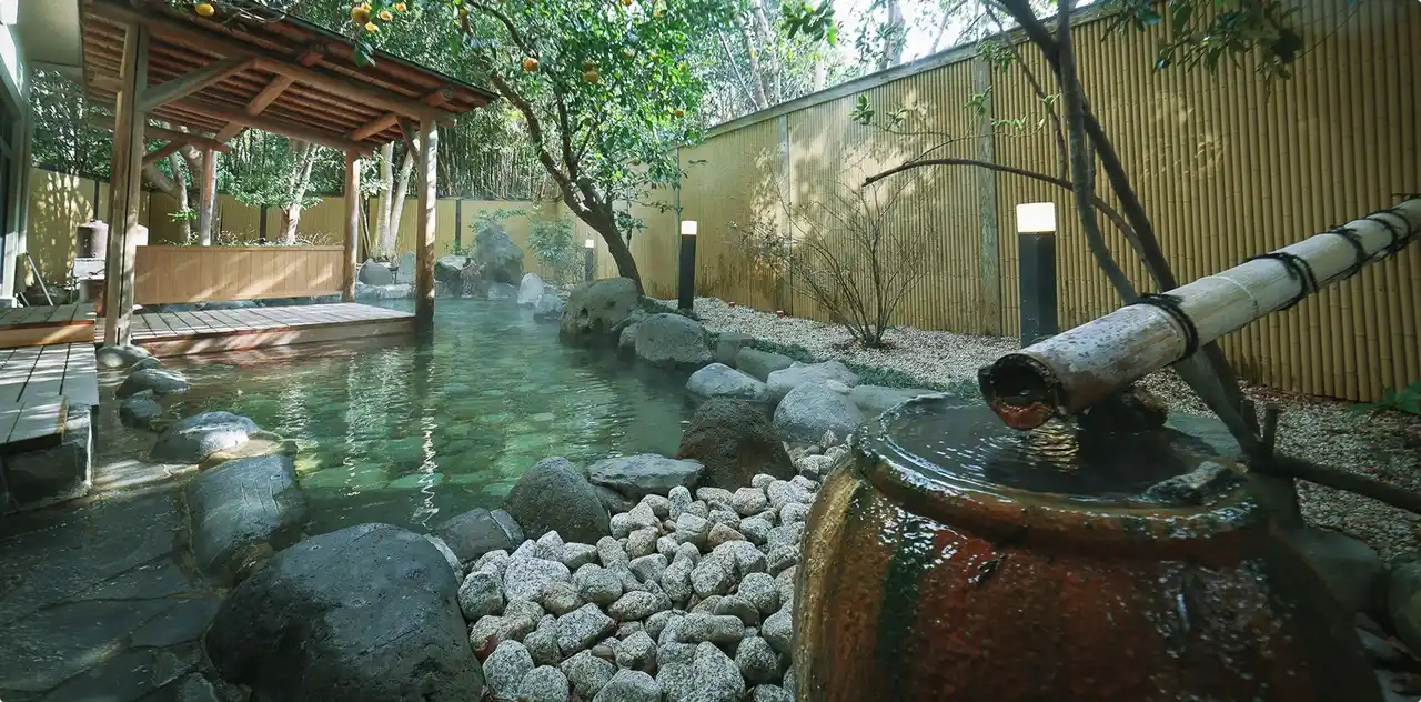 | 下賀茂温泉の豊かな自然に包まれながら、二本の自家源泉より湧き出るかけ流しの上質な湯で、心ゆくまで癒しのひとときをお過ごしください。 | ||||||||||||||
