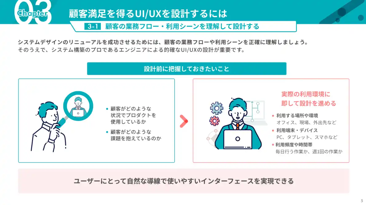 | 本ガイドでは、システムデザインリニューアルで陥りがちな失敗の構造と、顧客満足度を高めるUI/UX設計のポイントを整理しています。 | |||