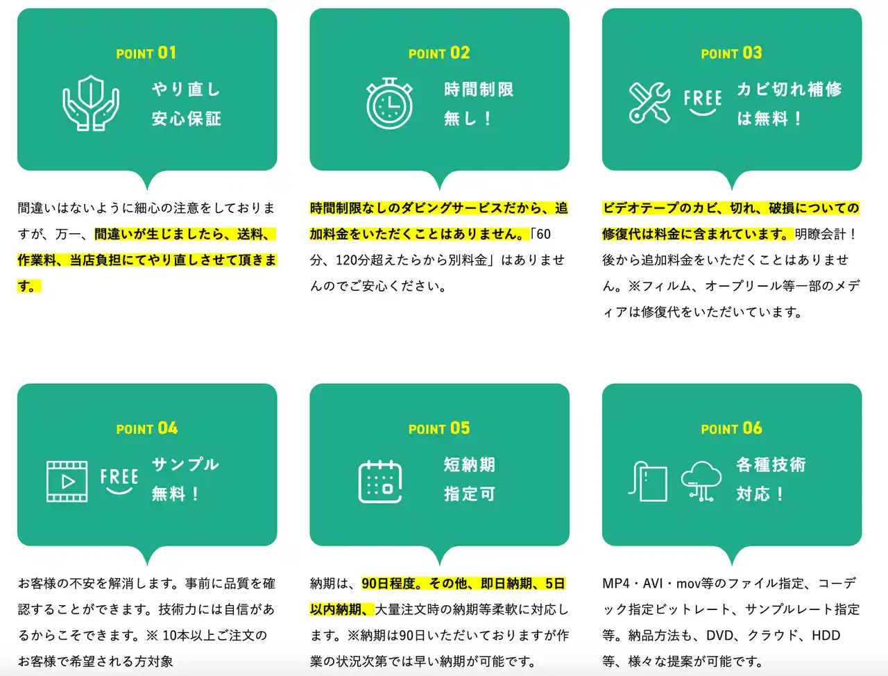 ダビングコピー革命はあらかじめ全てを含んだ料金設定とすることで、お客様が安心して依頼できる仕組みを整えています。