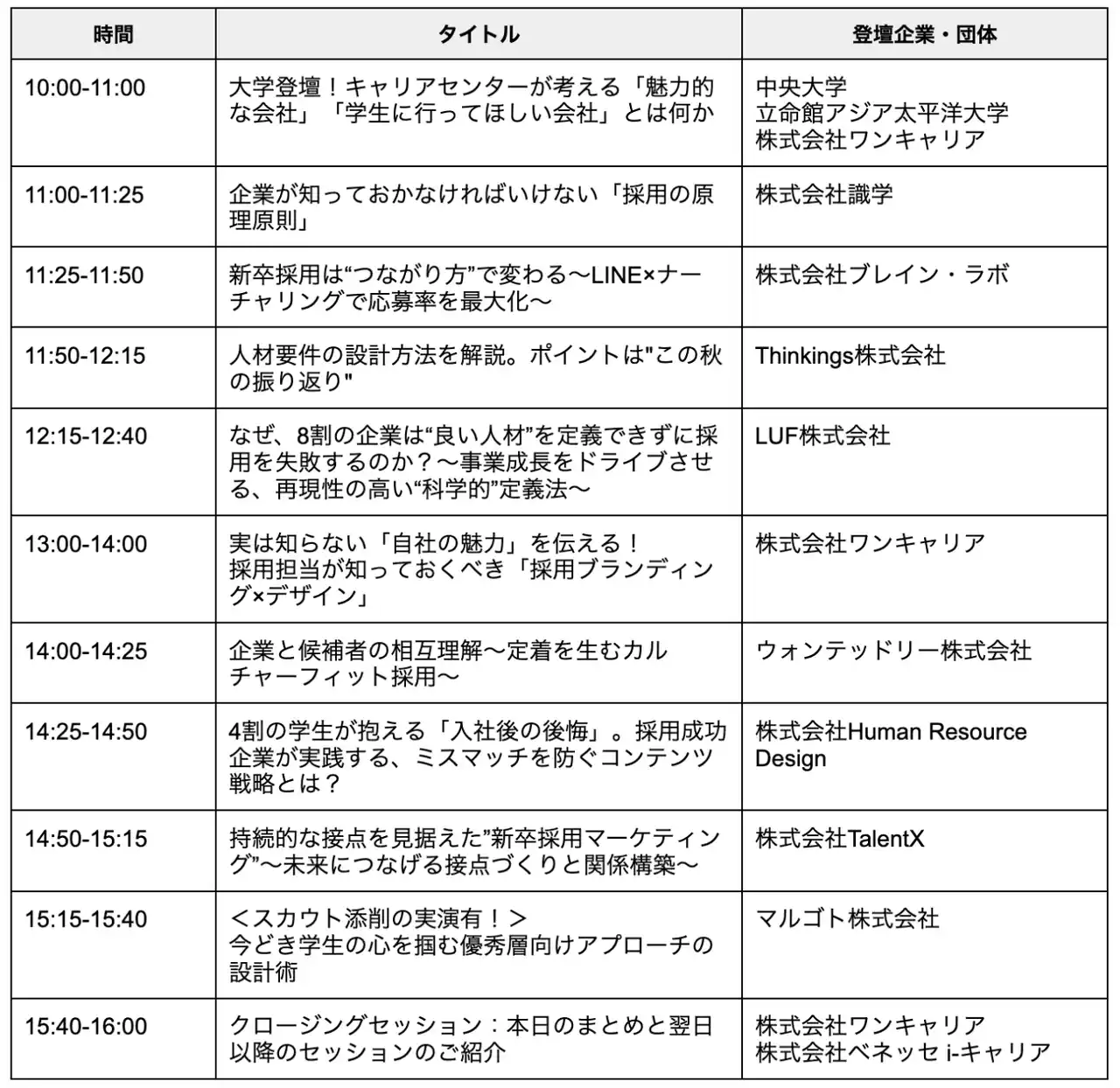| 参加対象:企業・団体の人事・採用担当者 | ||||||||
