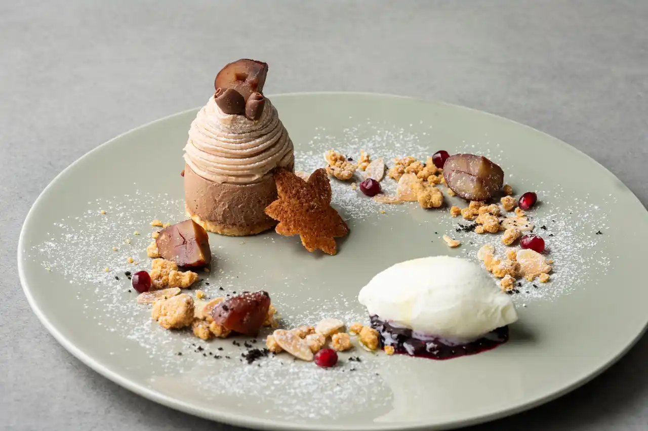 | 【デザート】「オリーブオイルのアイスと栗のモンブラン仕立て | ||||||||||||||||