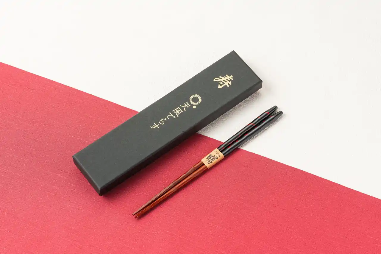 紀州の天然木に本漆を塗り、漆器職人が丹念に仕上げた塗り箸です。