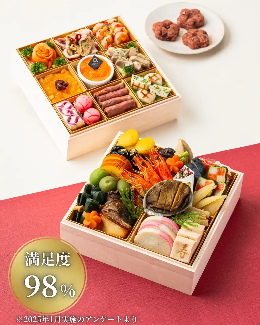 昨年お求めいただいた多くのお客様から「こんなに美味しいおせちは初めて!」「高野山へまた行きたくなりました」「子供から大人まで楽しめるおせちであっという間に完食でした」などあたたかいご感想とともに、満足度98%という高い評価をいただきました。