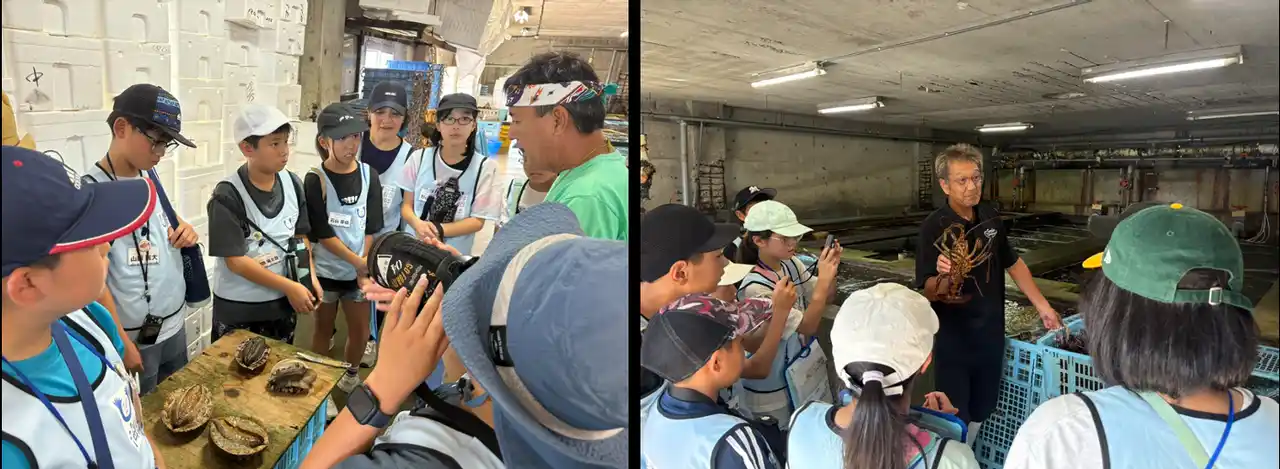 一般社団法人海と日本プロジェクトin千葉県は、2025年8月20日(水)~22日(金)に千葉県内の小学校5・6年生20名を集め、「千葉の海っ子調査隊」を結成し、千葉伝統の海女文化を学び、海の未来を考えるイベントを開催しました。当プログラムは、千葉の海洋環境の変化や課題について、講義や畜養場見学、海女体験などを通して学ぶ、体験型学習プログラムです。また、体験後には体験したことを新聞記事にまとめると共に、千葉県内にチェーン展開している和食レストラン「すしめん処 大京」とコラボしたオリジナルメニューを考案しました。 |