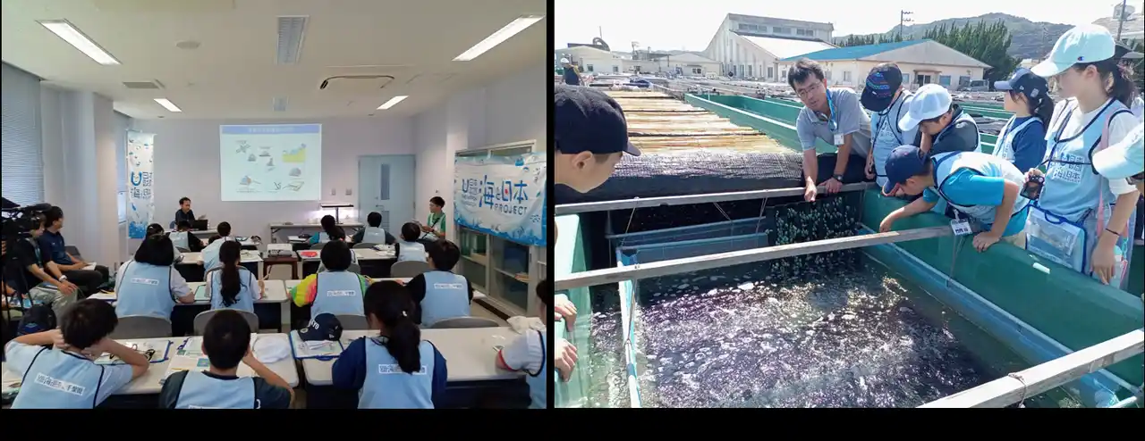 畜養場の役割を学び、海洋資源の保全や安定供給、付加価値向上のために、どのようなことが行われているのかを学びました。 |