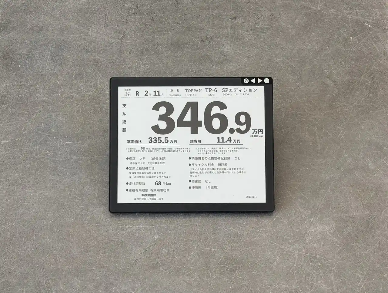 中古車電子ペーパープライスカード |