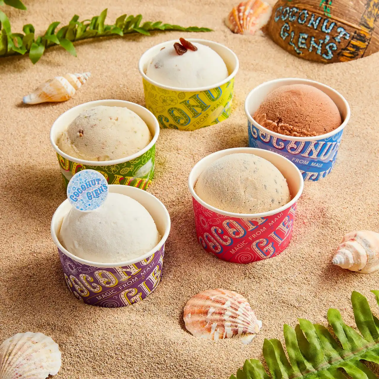 ココナッツグレンは、ミシュランの星付レストランをはじめ世界中でシェフとして活躍した創業者グレン氏が、マウイ島でココナッツと厳選した原材料を使用したアイスクリームを開発したのが始まりです。 |