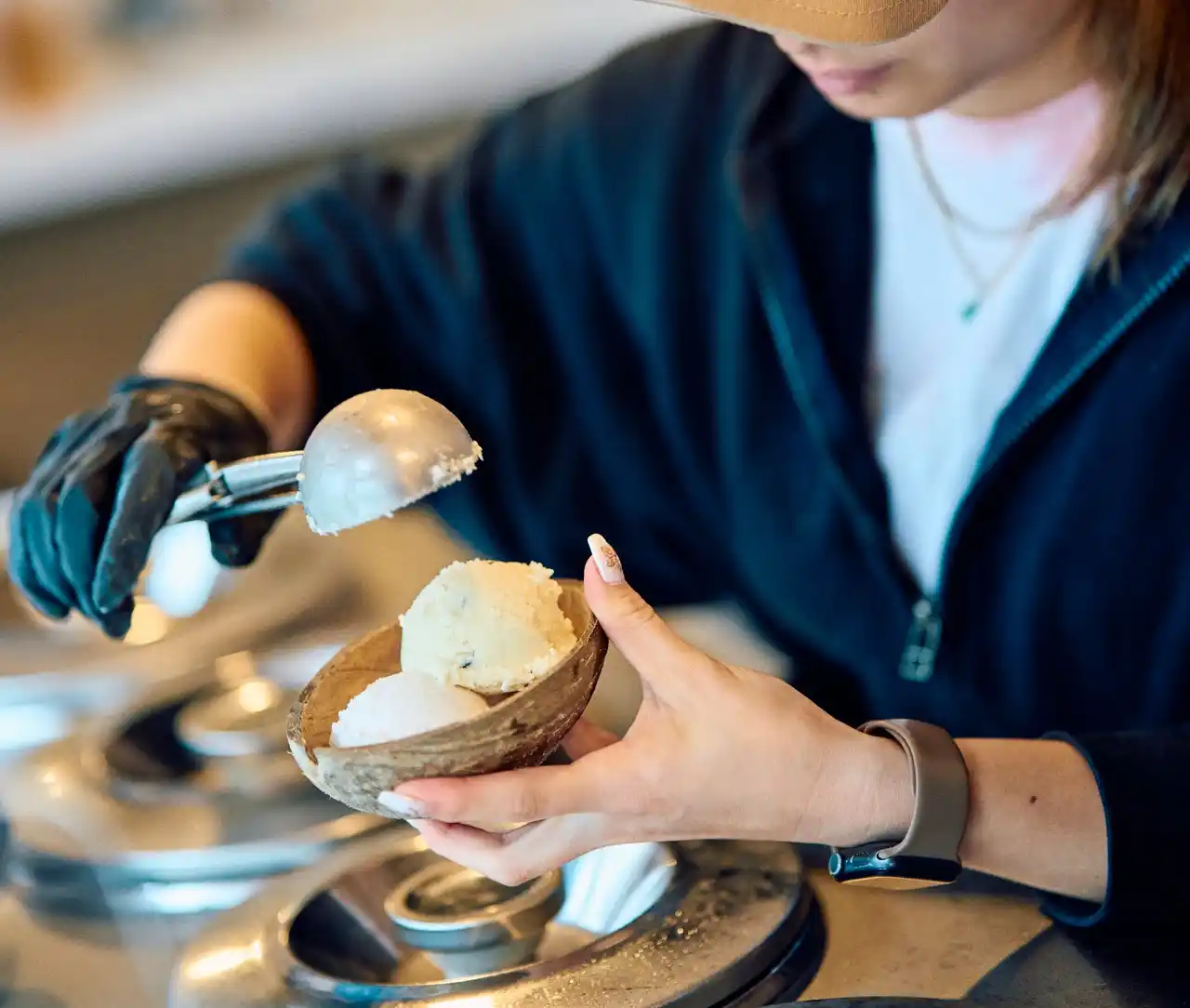 ココナッツグレンでは、全てのアイスクリームにオーガニックのココナッツミルクを使用しており、プラントベースとは思えない濃厚な味わいがありながら、さっぱりとした後味をお楽しみいただけます。 |
