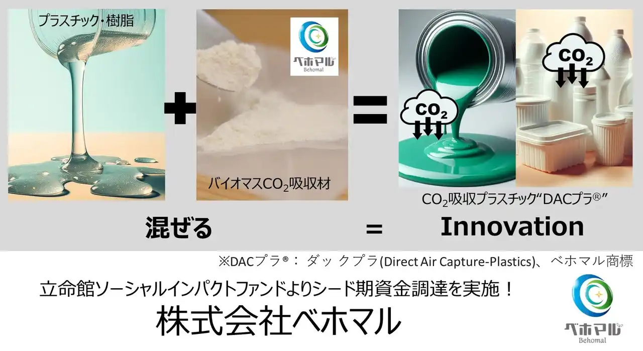 一つひとつの製品での吸収量は小さくても、社会全体で積み重なれば大きな力となります。ベホマルは、企業出身の創業者を中心に実用性・量産性を重視した研究開発を推進し、大学や産業界と連携しながら、素材の社会実装に挑戦しています。 |