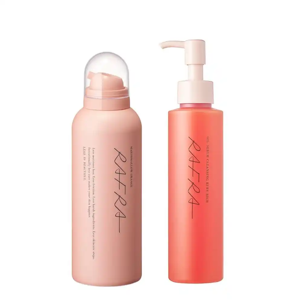 新商品「オイルセラムクレンジング ルビーリッチ(150ml)」と、キメの細かいマイクロ泡が毛穴汚れを吸着して落とす炭酸※4泡洗顔「マシュマロオレンジ(150g)」の限定セット。 |