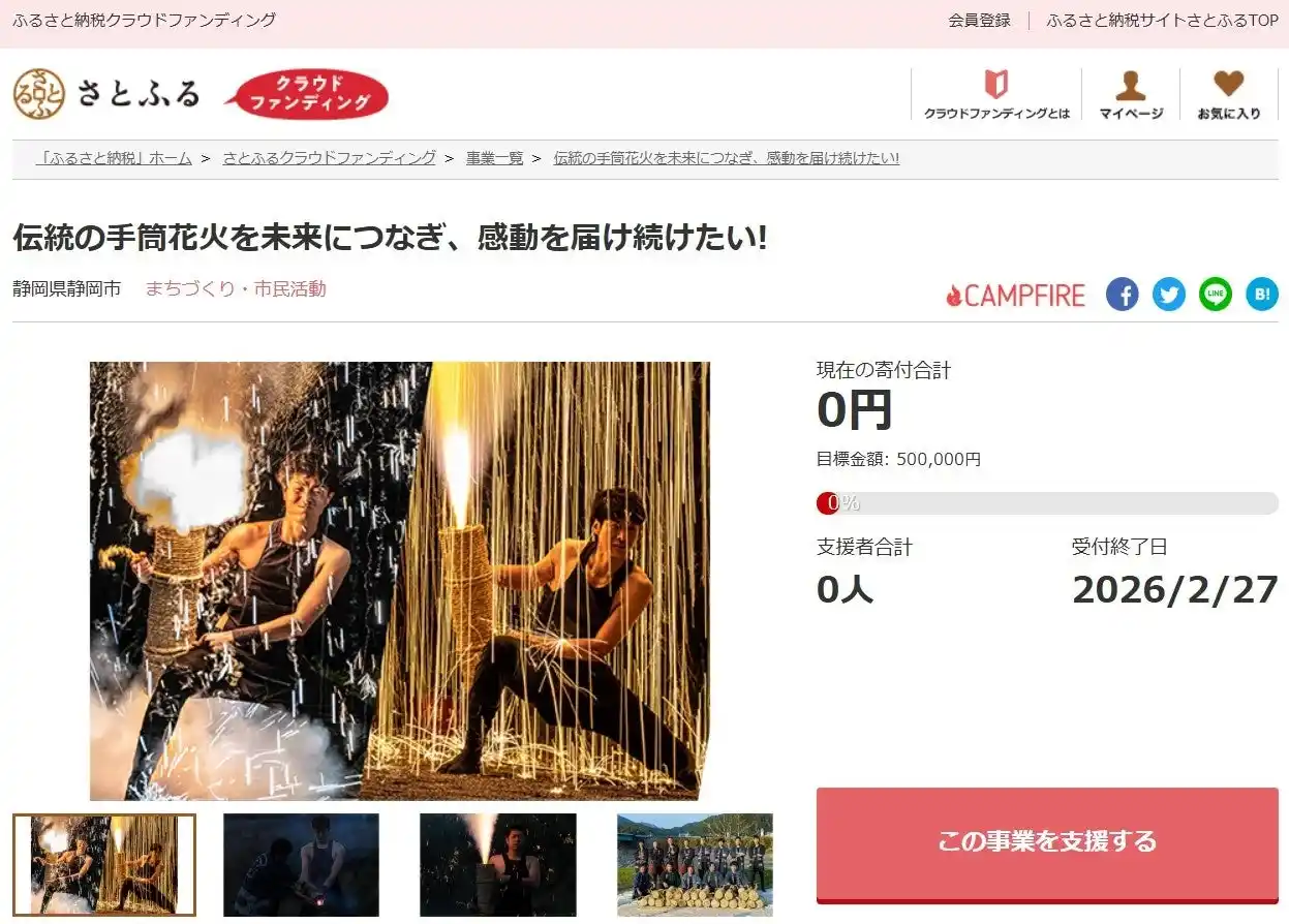静岡県静岡市とふるさと納税ポータルサイト「さとふる」を運営する株式会社さとふる(本社:東京都中央区、代表取締役社長 兼 CEO:藤井 宏明)は、「さとふるクラウドファンディング」にて、静岡県静岡市における2事業の寄付受け付けを2025年8月29日より開始します。なお、里山体験の事業は2023年に開始し今回で4回目、手筒花火の事業は2020年に開始し今回で6回目の寄付募集となります。 |