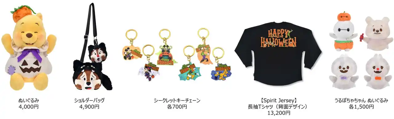 毎年恒例のお菓子は、ミッキーフェイスをモチーフにしたかぼちゃのバッグ入りお菓子や焼きチョコレートなどを取り揃えます。そのほか、全6種のシークレットキーチェーン、キャラクターをモチーフにしたかぼちゃの総柄半袖シャツ、「Spirit Jersey」の長袖Tシャツに加え、おばけやかぼちゃなどハロウィーン限定コスチュームの「うるぽちゃちゃん」なども登場します。 |