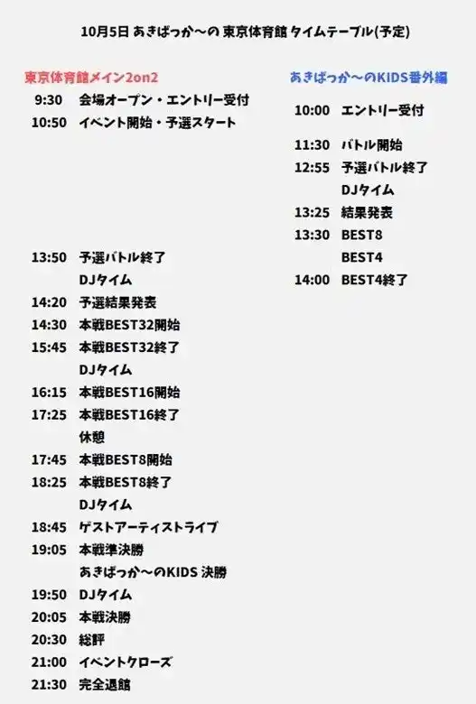 イベント名:「あきばっか~の東京体育館 A-POP 2on2 DANCE BATTLE × APOP FESTIVAL」 |