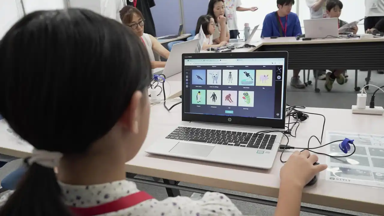 本ワークショップはテレビ朝日が開催したバーチャル空間の文化祭「メタメタ大作戦2025」特別企画として行われました。子どもたちに「メタバース空間」を体験してもらうテレビ朝日パートと、「AR(拡張現実)」を体験してもらうSTYLYパートという2部構成で開催。「メタバース体験」では、タブレットで“自分の分身“であるアバター作りを体験。「AR体験」では子どもたちがパソコンを使って実際の都市空間を共同で編集し、テレビ朝日本社周辺に思い思いの動物を配置する体験を実現しました。 |
